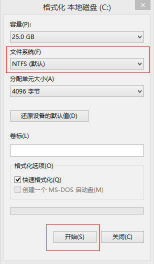 7.鍦ㄥ脊鍑虹殑鏍煎紡鍖栫獥鍙d腑锛屽皢鏂囦欢绯荤粺鏍煎紡鏀规垚NTFS鏍煎紡锛岀劧鍚庡崟鍑“寮濮”鎸夐挳锛屽鍥撅細